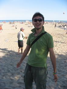 隣でビーチバレーを楽しむイケメン集団に、サングラスの奥から熱い視線を送っていました(笑)