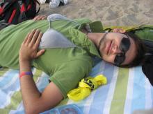 泳ぐわけでもなく。砂浜で寝転がって、みんなでまったり。