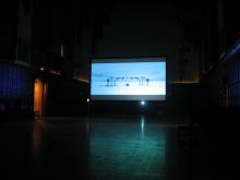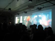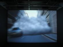 こちらは暗い部屋で、煙が迫り来るのを感じるアートです。