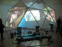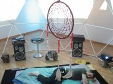 モチーフを夢で、真ん中で眠るアーティストさんの夢が映像となって映し出されます。