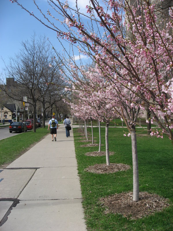 すると、トロント大学の中心にある図書館の裏で、桜を発見!