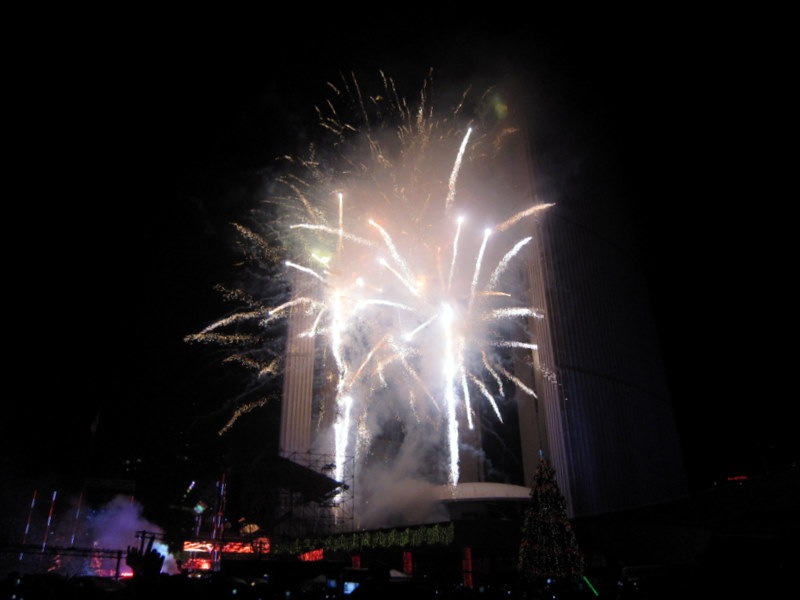 今年のカウントダウンは、トロント市庁舎のニューイヤー花火を見に行きました。