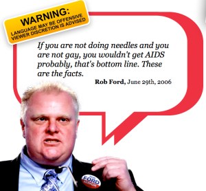 プライドパレードやトロントで唯一のゲイ向け匿名性感染症クリニックへの資金を打ち切ろうとしたりと、未だにゲイのことはまだ好きじゃないみたいで。