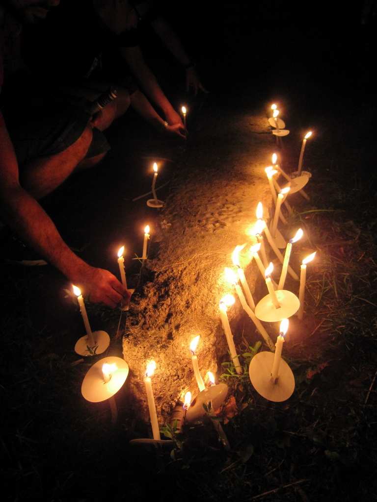 少し表情を変えた彼、キャシーの手からビラとロウソクを受け取って。