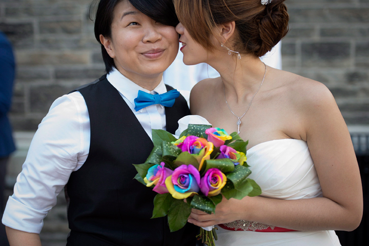 彼女たちはトロントのワールドプライドで行われた同性カップルの合同結婚式に参加し。